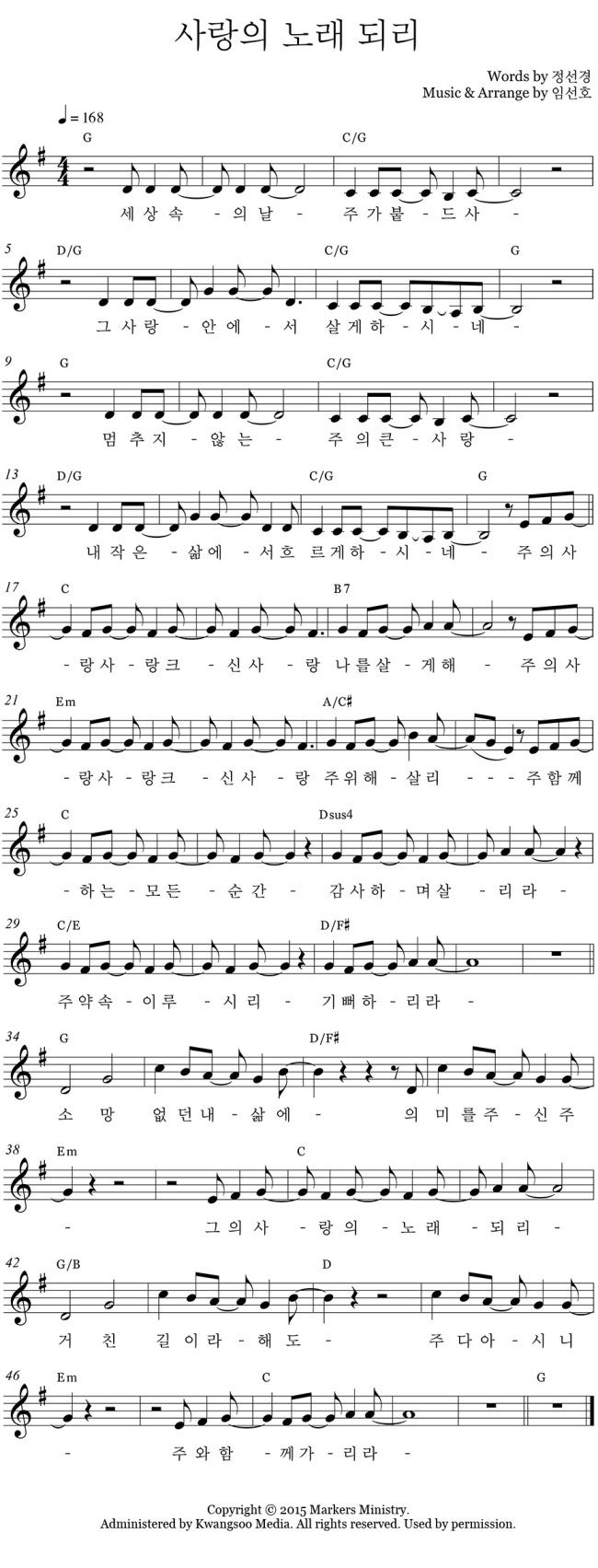 사랑의 노래 되리 악보 G코드 찬양 콘티 묵상 마커스